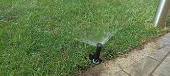 Не плохой Авто полив получился на улице Кадышева, не смотря на то что очень много дождевателей, насос и спец. емкость отлично справляются.
